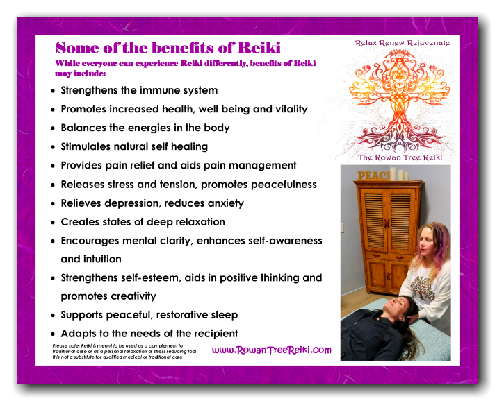 DISCLAIMER - Rowan Tree Reiki, encourages their client's to continue to visit and be treated by their healthcare professionals, including, without limitation, a physician, vetinarian, etc and