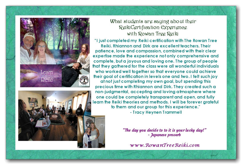 DISCLAIMER - Rowan Tree Reiki, encourages their client's to continue to visit and be treated by their healthcare professionals, including, without limitation, a physician, vetinarian, etc and